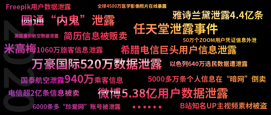 2020年,新冠疫情肆虐全球,催化各行業(yè)加速數(shù)字化轉型,數(shù)據(jù)的價值在進一步凸顯,數(shù)據(jù)的泄露也在持續(xù)高頻發(fā)生,企業(yè)面臨資產與聲譽的重大損失,公眾深受隱私曝光與騷擾詐騙的困擾。
