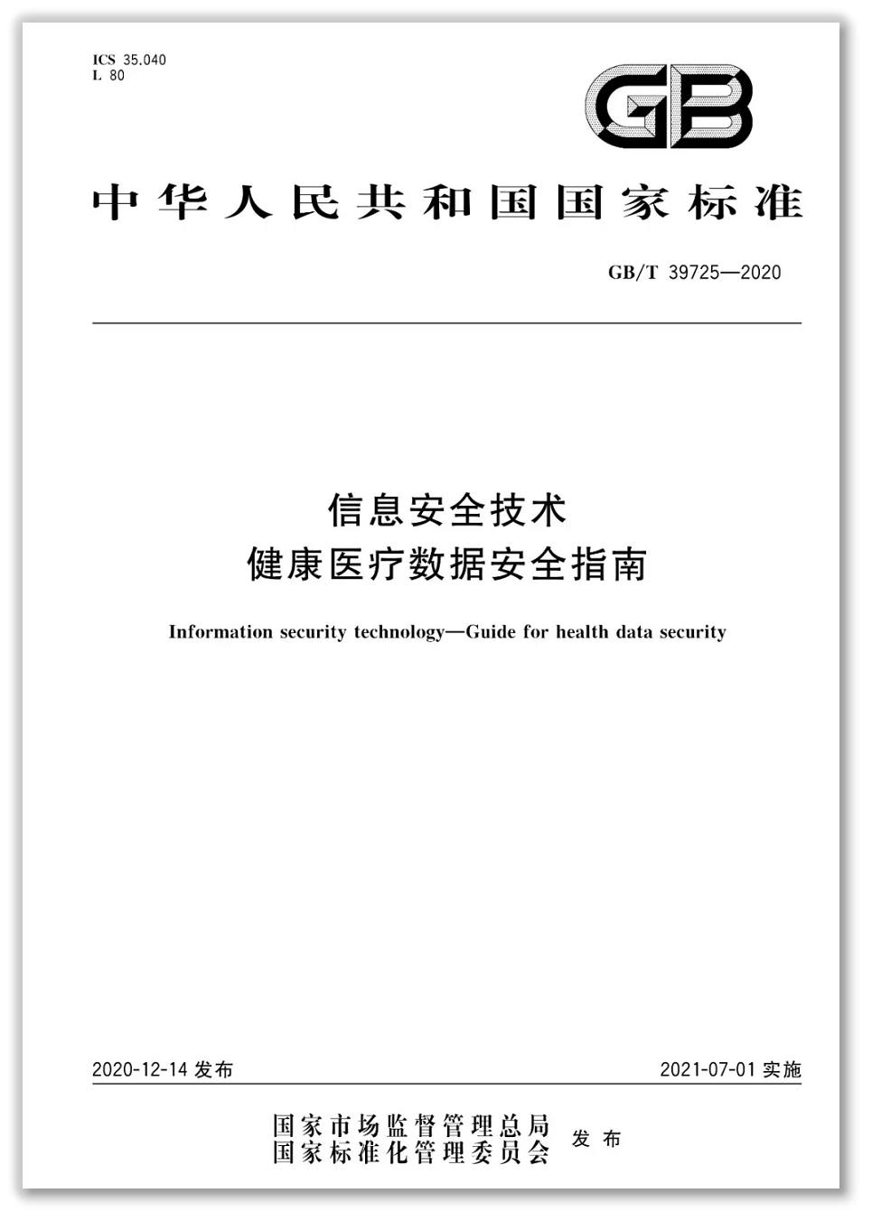 2020年年底,信安標委第28號國家標準公告,正式發(fā)布了《信息安全技術健康醫(yī)療數(shù)據(jù)安全指南》(GB/T 39725-2020,以下簡稱“安全指南”),自2021年7月1日期實施。